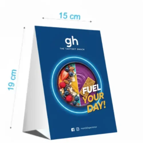 • Use Engaging Visuals – Attractive colours, graphics and layouts make your branded tent cards more appealing and drive attention to your message.